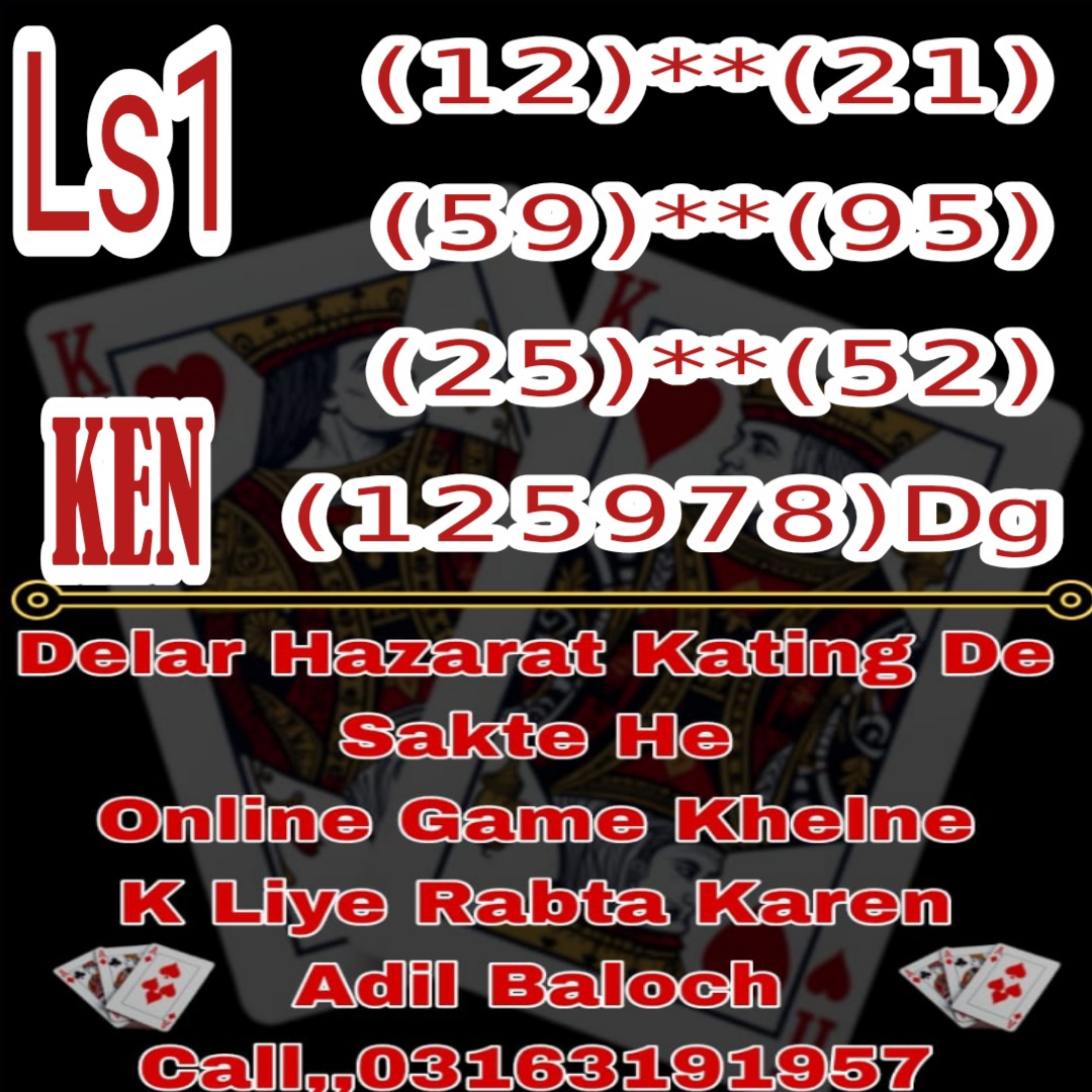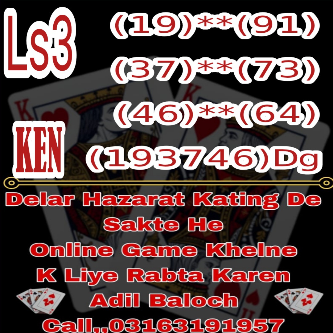 Adil Baloch / Ak Lasbela January 12 at 7:51 PM Five star 19..91 37..73 15..51 Ken..(193752) Dg Delar Hazarat Kating De Sakte He Online Game Khelne K Liye Rabta Karen Chief Admin Adil Baloch Call,,03163191957 Our website:: https://aklasbelasatta.com