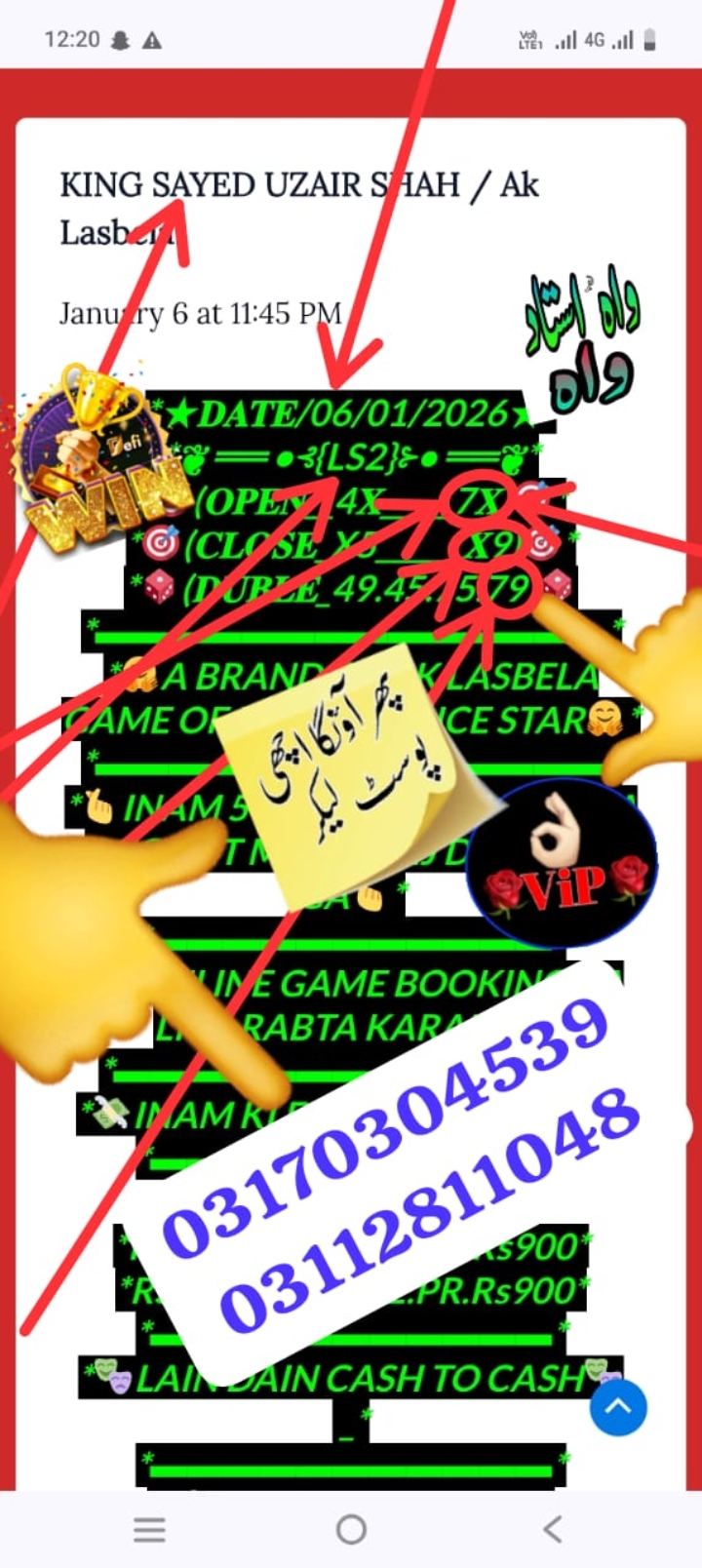 *ڈیلی لسبیلا آن لائن گیم کی بکنگ ہےجو دوست کام کی مصروفیات کی وجہ سے اڈّے پر نہیں جا سکتےاور اپنا گیم مِس کر دیتے ہیں وہ دوست اَب بے فِکر ہو جائیں کیونکہ اّب آپ کو سید اوزیر دے رہا ہے آن لائن گیم کھیلنے کی سہولت وہ بھی گھر بیٹھے انعام کی فُل گارنٹی ہے گیم کھیلنے کے لیے رابطہ کریں*